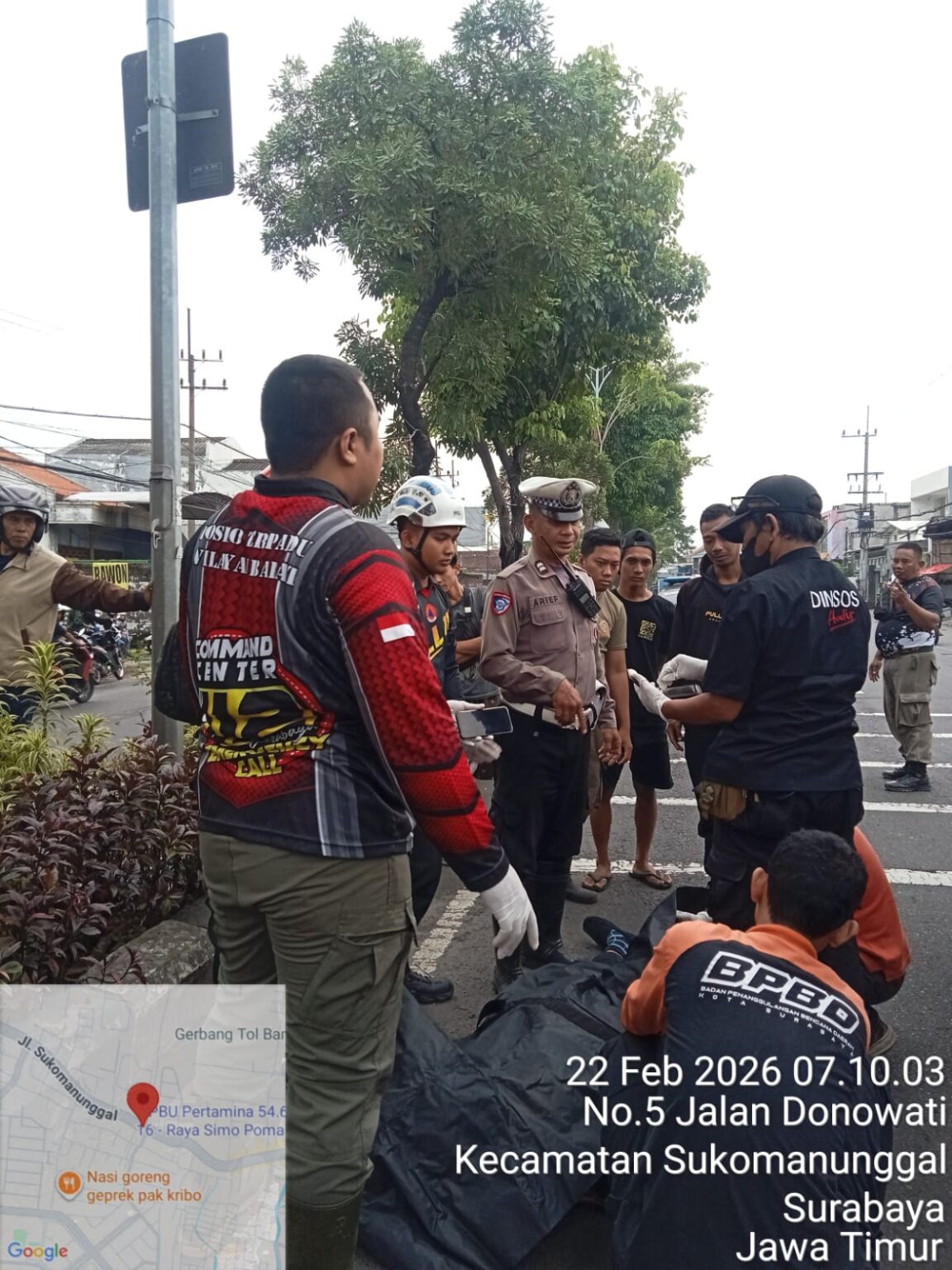 Petugas patroli Polsek Sukomanunggal, yakni unit 12.02 dan 14.22, segera mendatangi lokasi setelah menerima laporan masyarakat. Penanganan selanjutnya diserahkan kepada Unit Laka Lantas Polrestabes Surabaya untuk proses penyelidikan lebih lanjut.